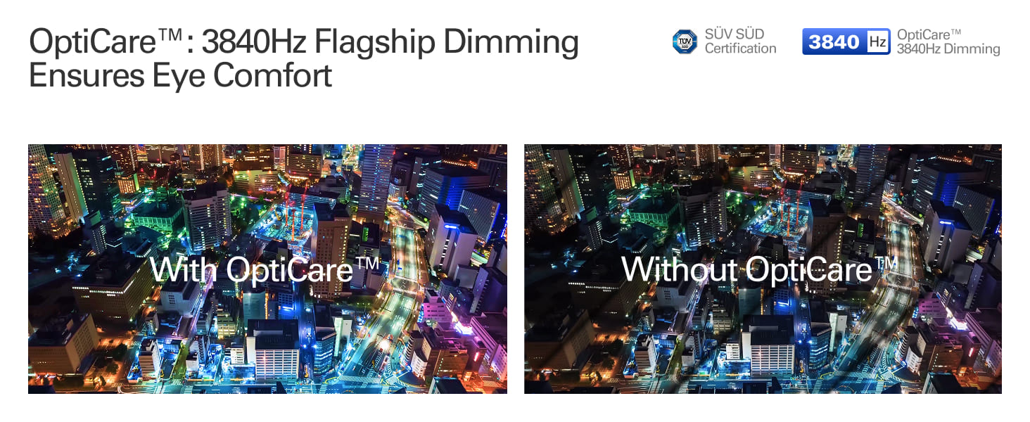 - OptiCare™ Eye Protection: 3840Hz dimming, low blue light & flicker-free for reduced eye strain.