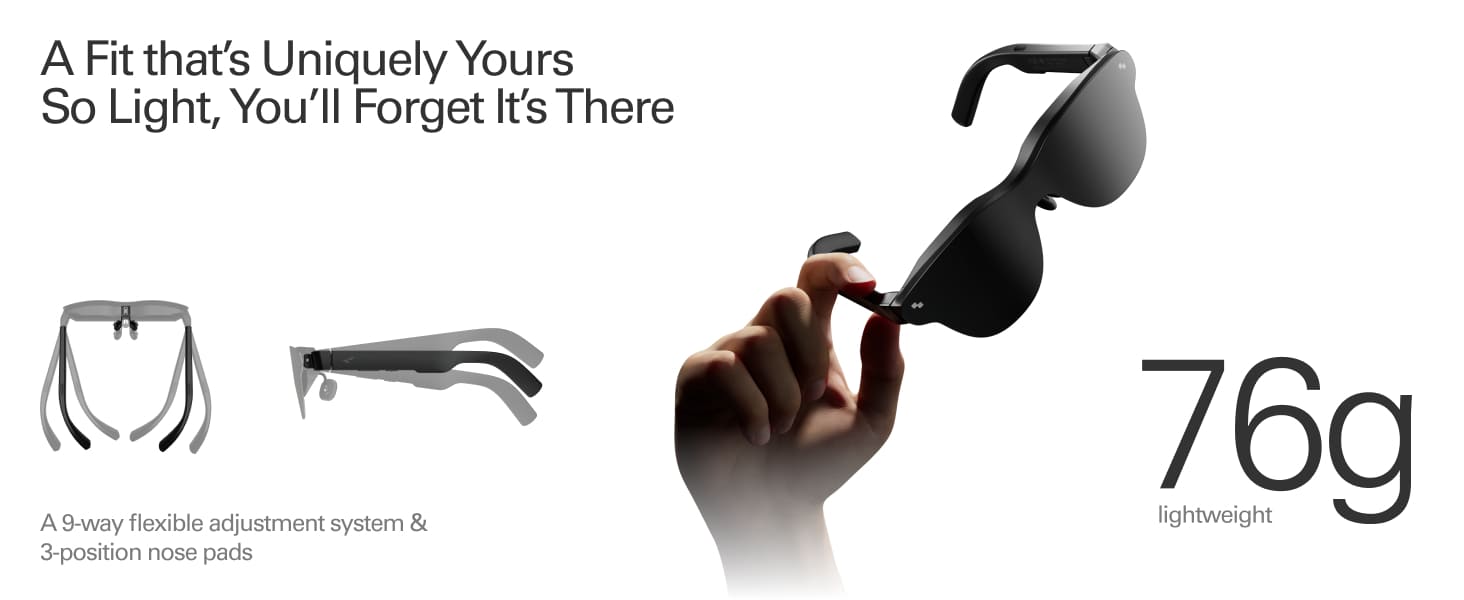 - Customizable Ergonomic Fit: All-day wear with adjustable nose pads & flexible temples. Weighs 76g for pressure-free comfort.